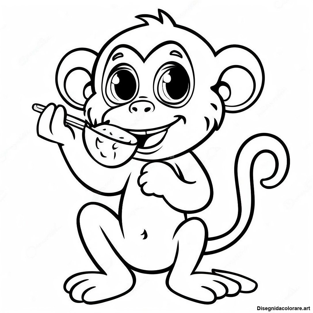 Scarica il PDF Stampabile di Pagina Da Colorare Di Una Scimmia Divertente Che Mangia Una Banana