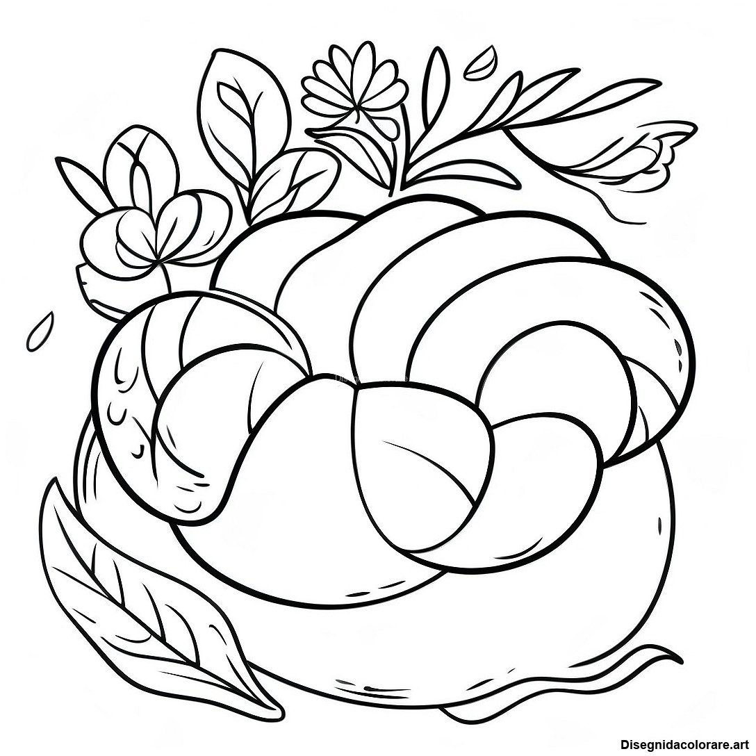 Scarica il PDF Stampabile di Pagina Da Colorare Rosh Hashanah Con Pane Challah Tradizionale