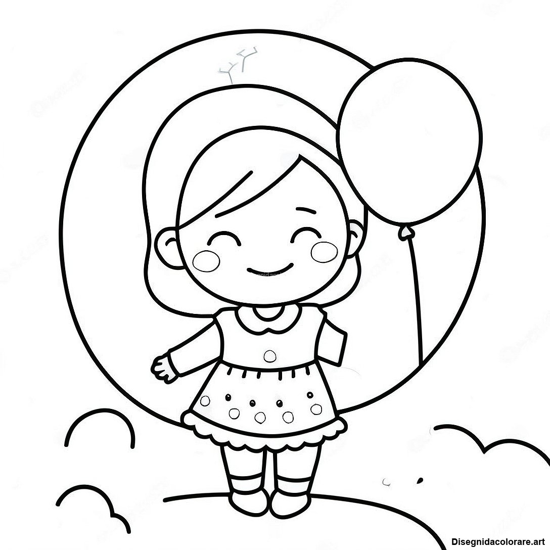 Ragazza Dolce Con Un Palloncino Pagina Da Colorare