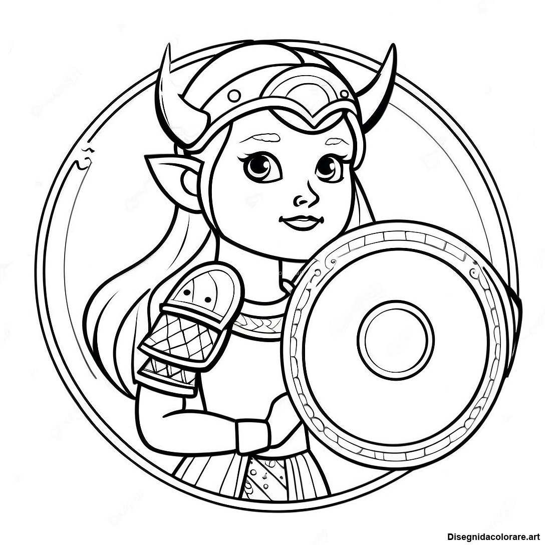 Ragazza Vichinga Con Scudo Da Colorare