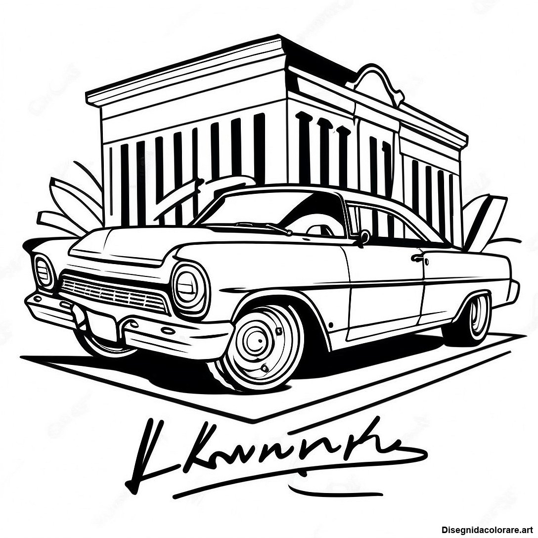 Scarica il PDF Stampabile di Retro Lowrider Con Ruote Cromate Disegno Da Colorare