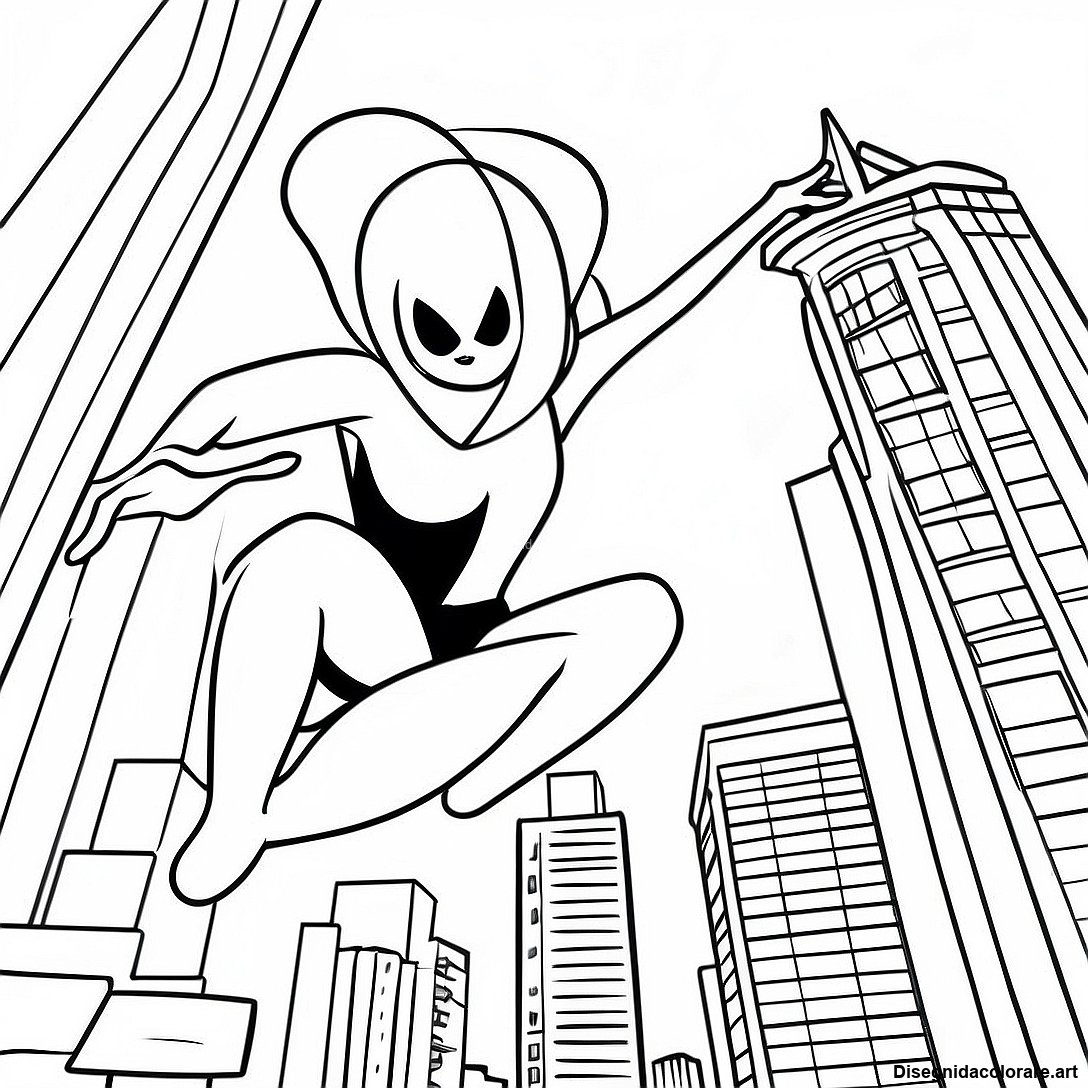 Spider Gwen Che Oscilla Per La Città Disegno Da Colorare