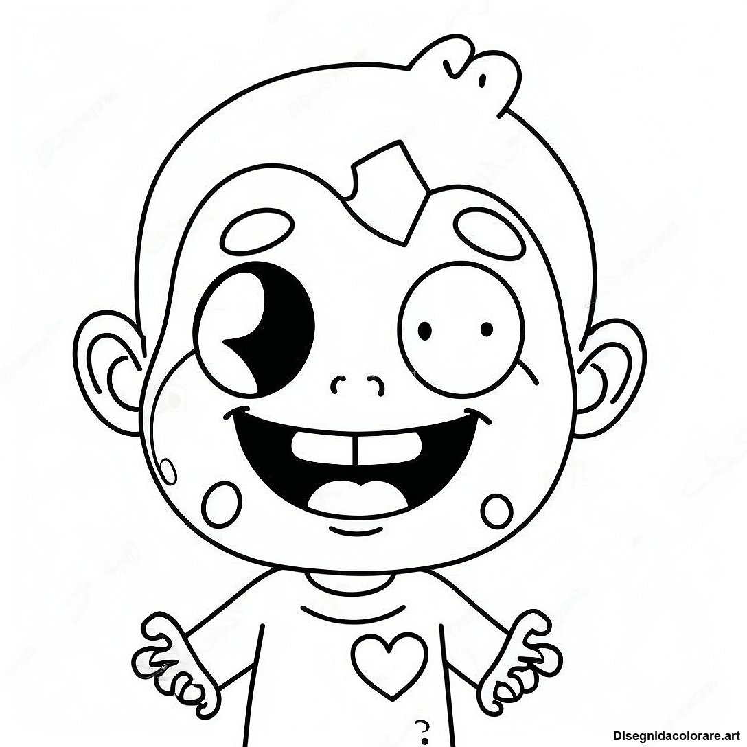 Scarica il PDF Stampabile di Zombie Carino Con Un Grande Sorriso Da Colorare